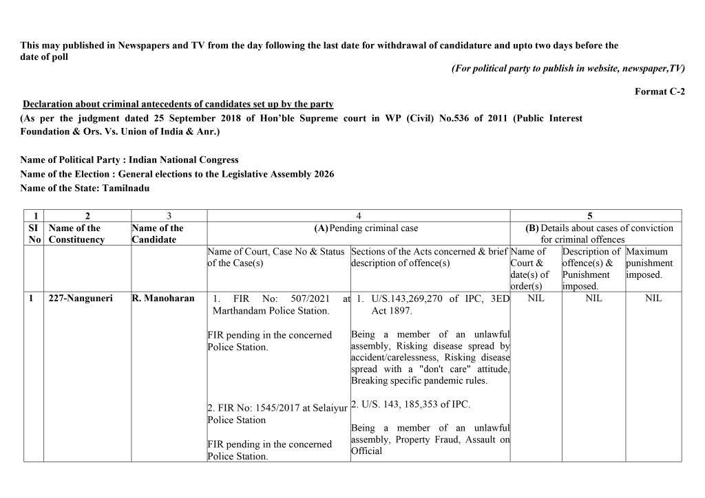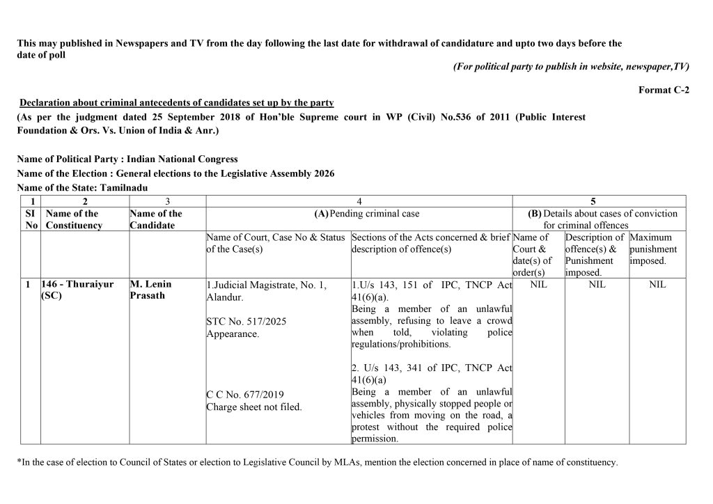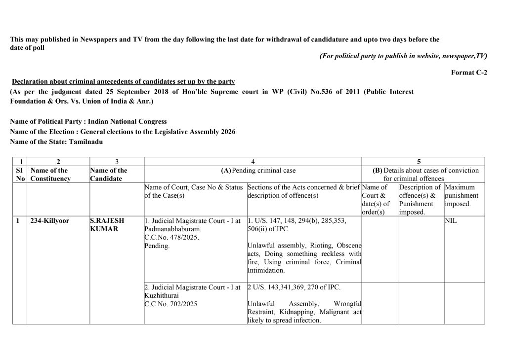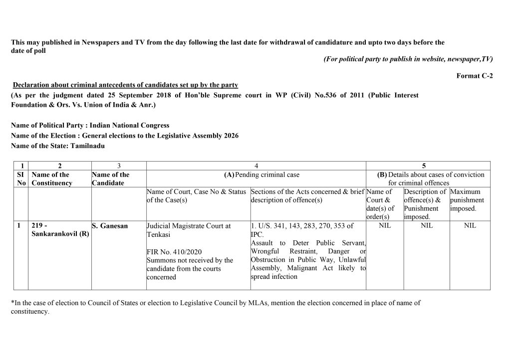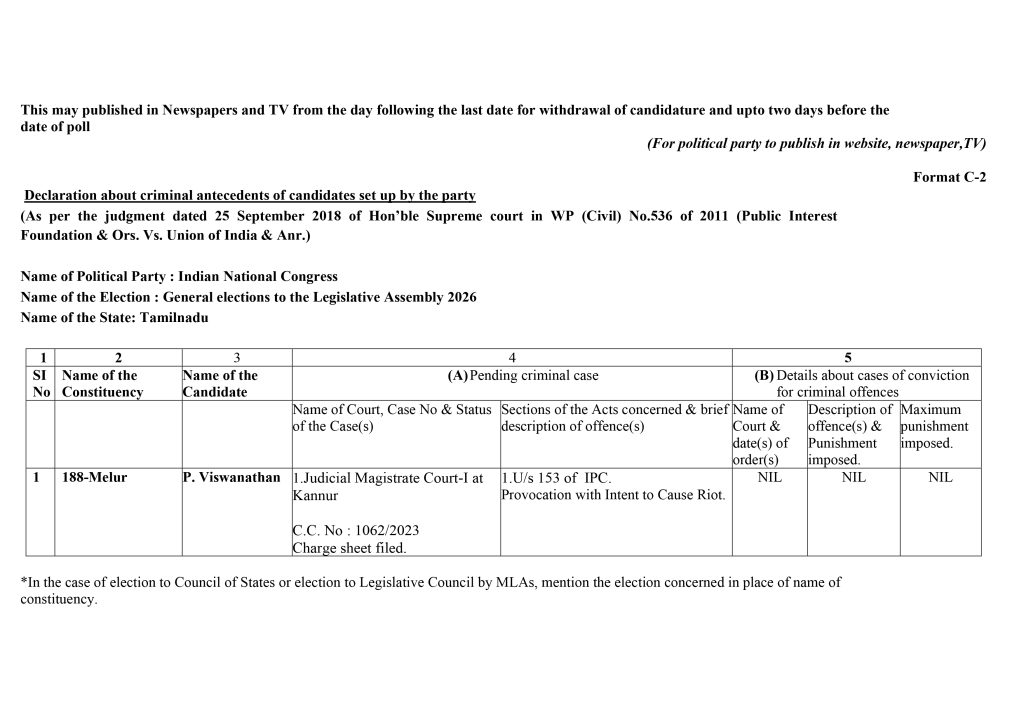 Form C2 – Assembly Elections 2026