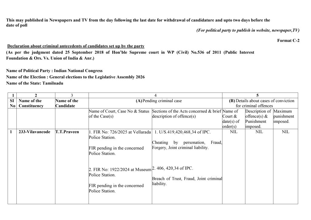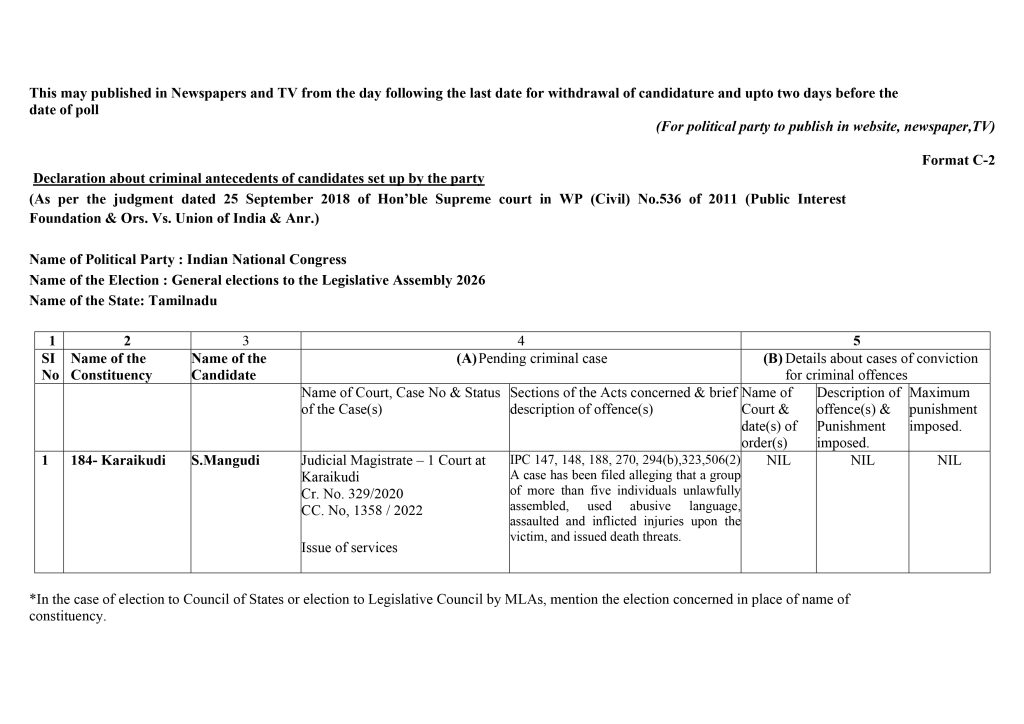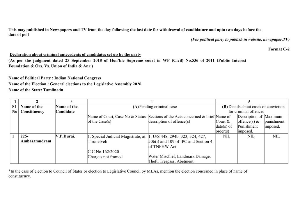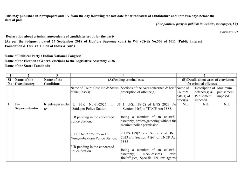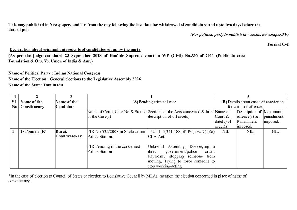 Form C2 – Assembly Elections 2026